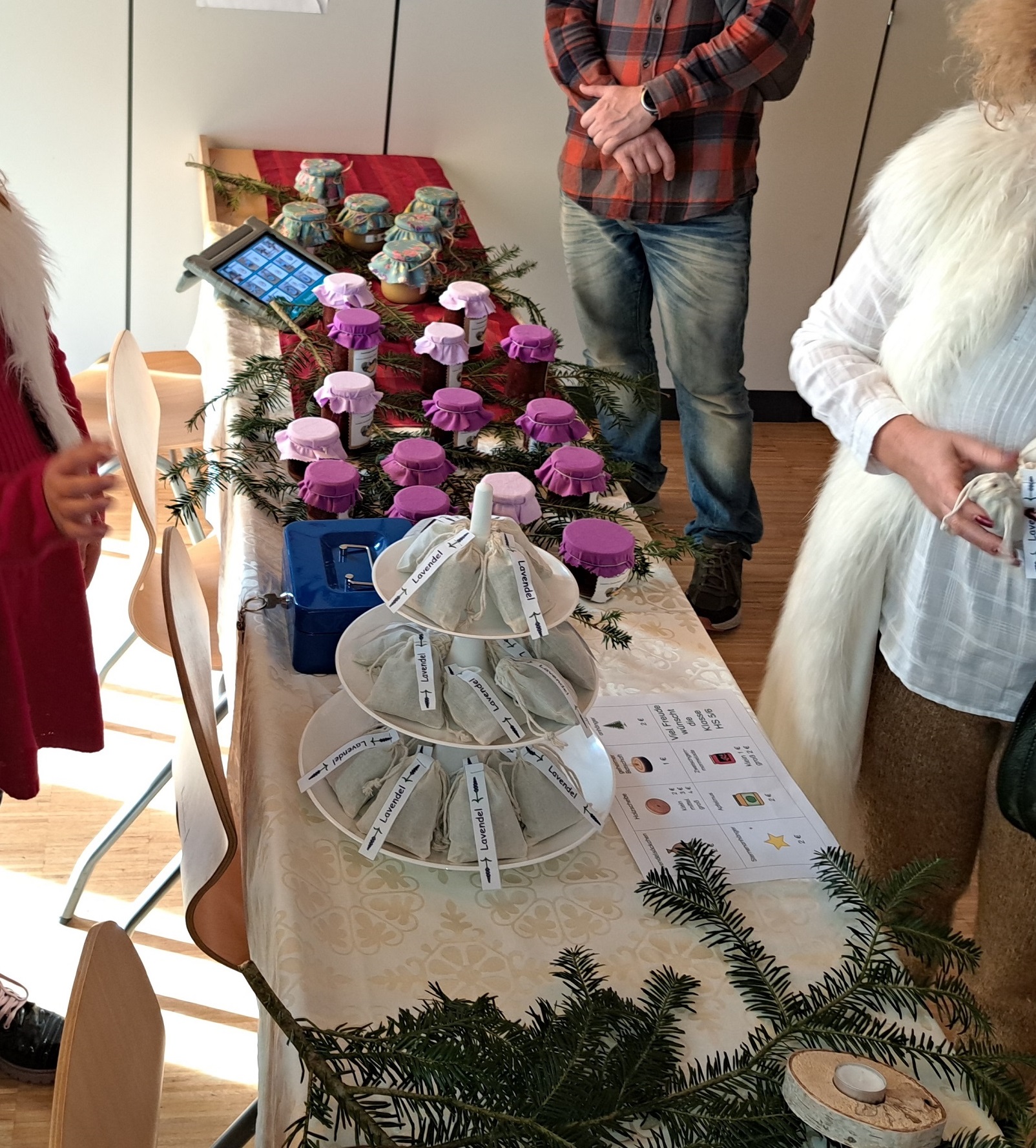 An verschiedenen Verkaufsständen, wurden von Schülern gestaltete Weihnachtsdeko, Plätzchen, Seifen, Marmeladen, weitere Leckereien und vieles mehr angeboten.