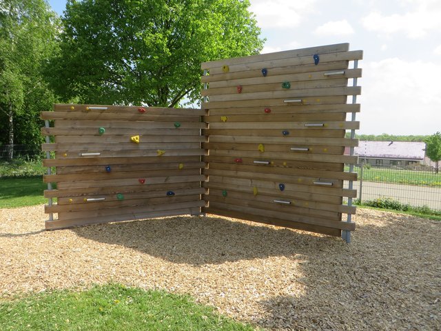 - Pausenhof mit Spielplatz, Bolzplatz und Kletterwand